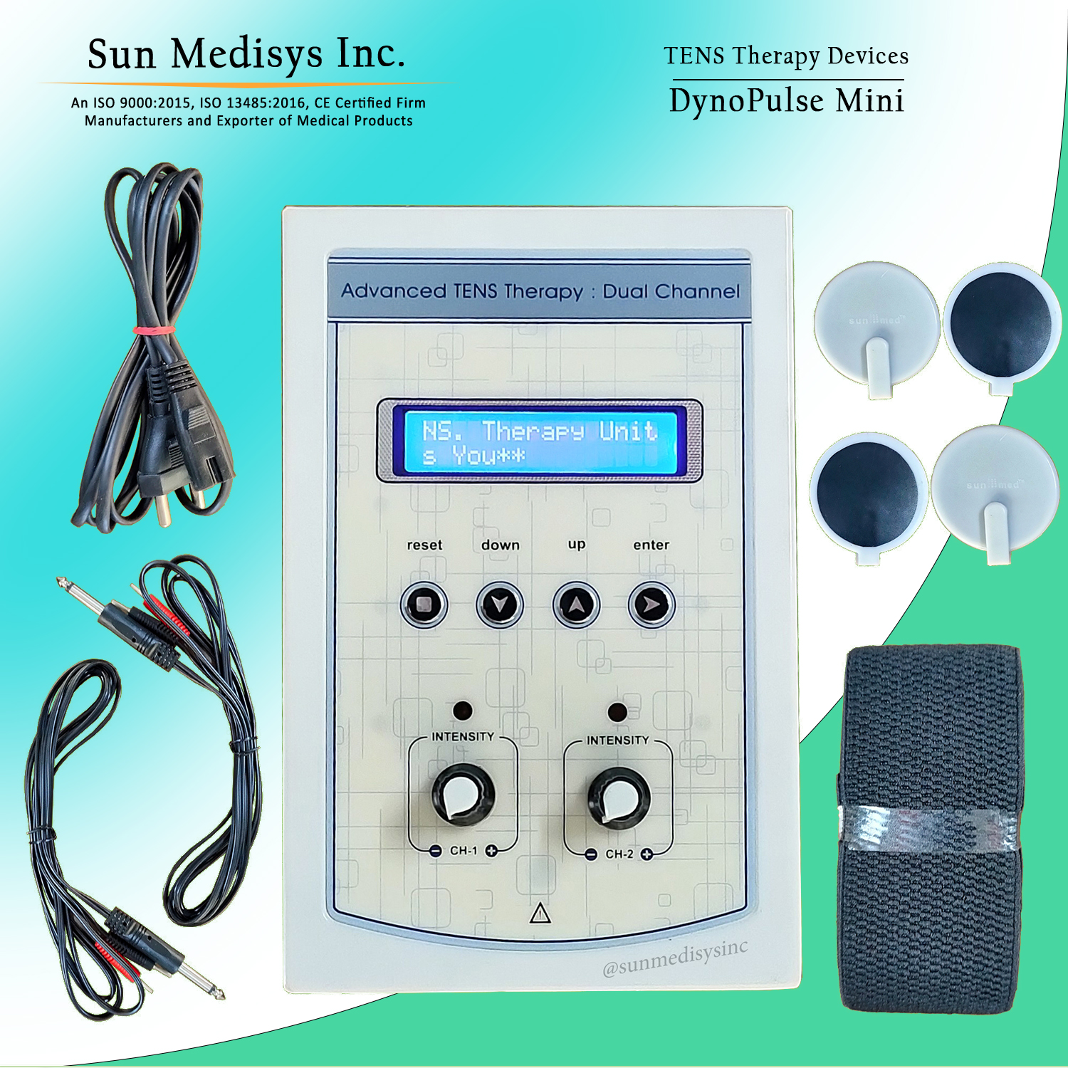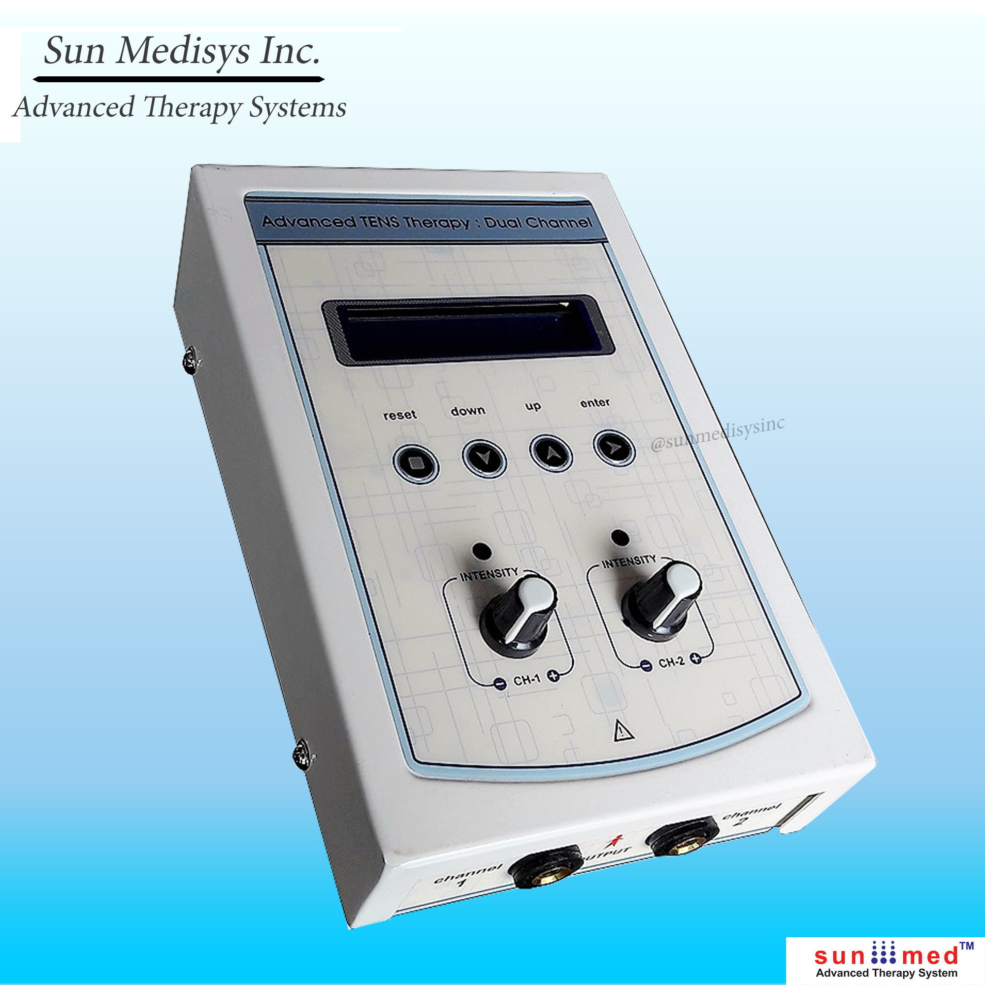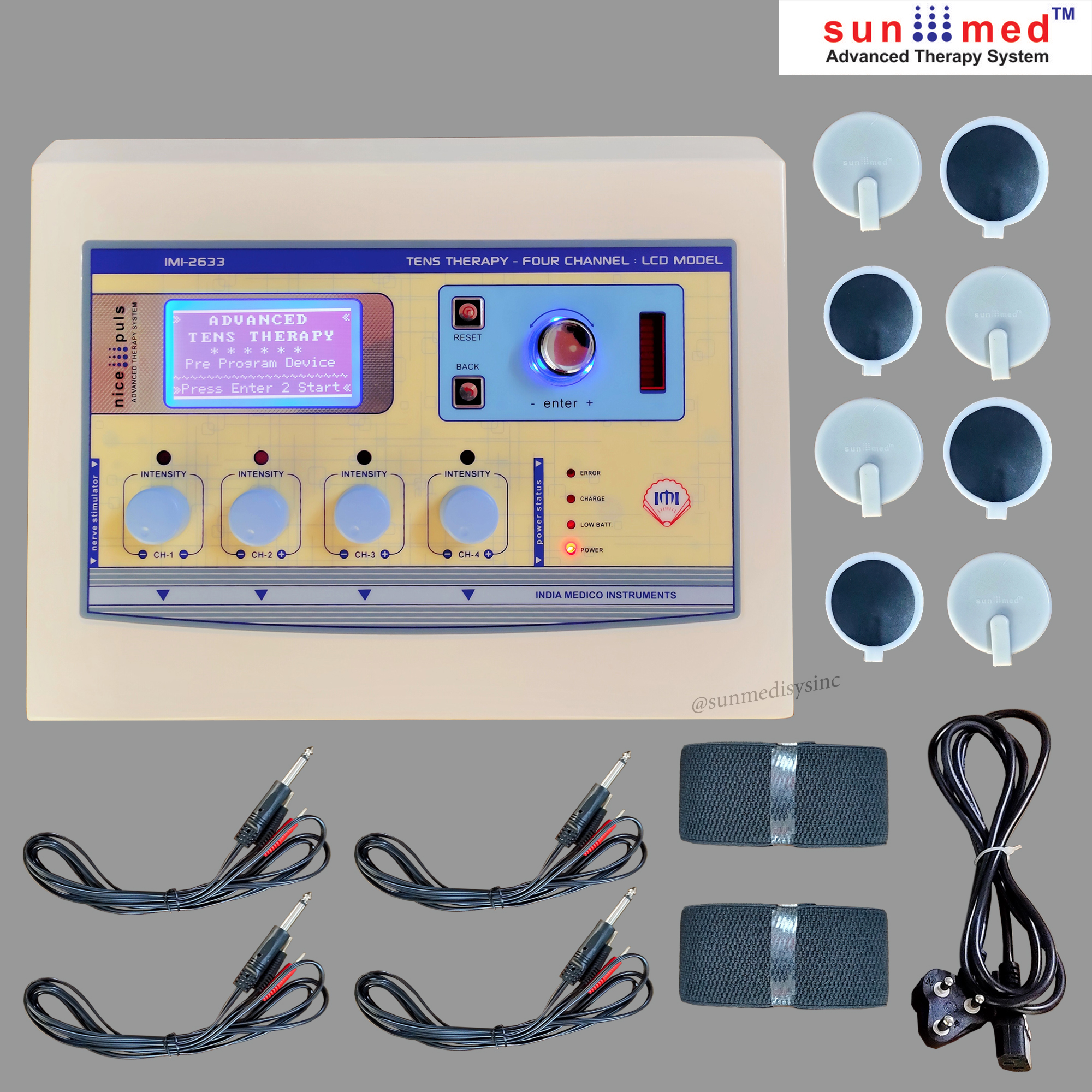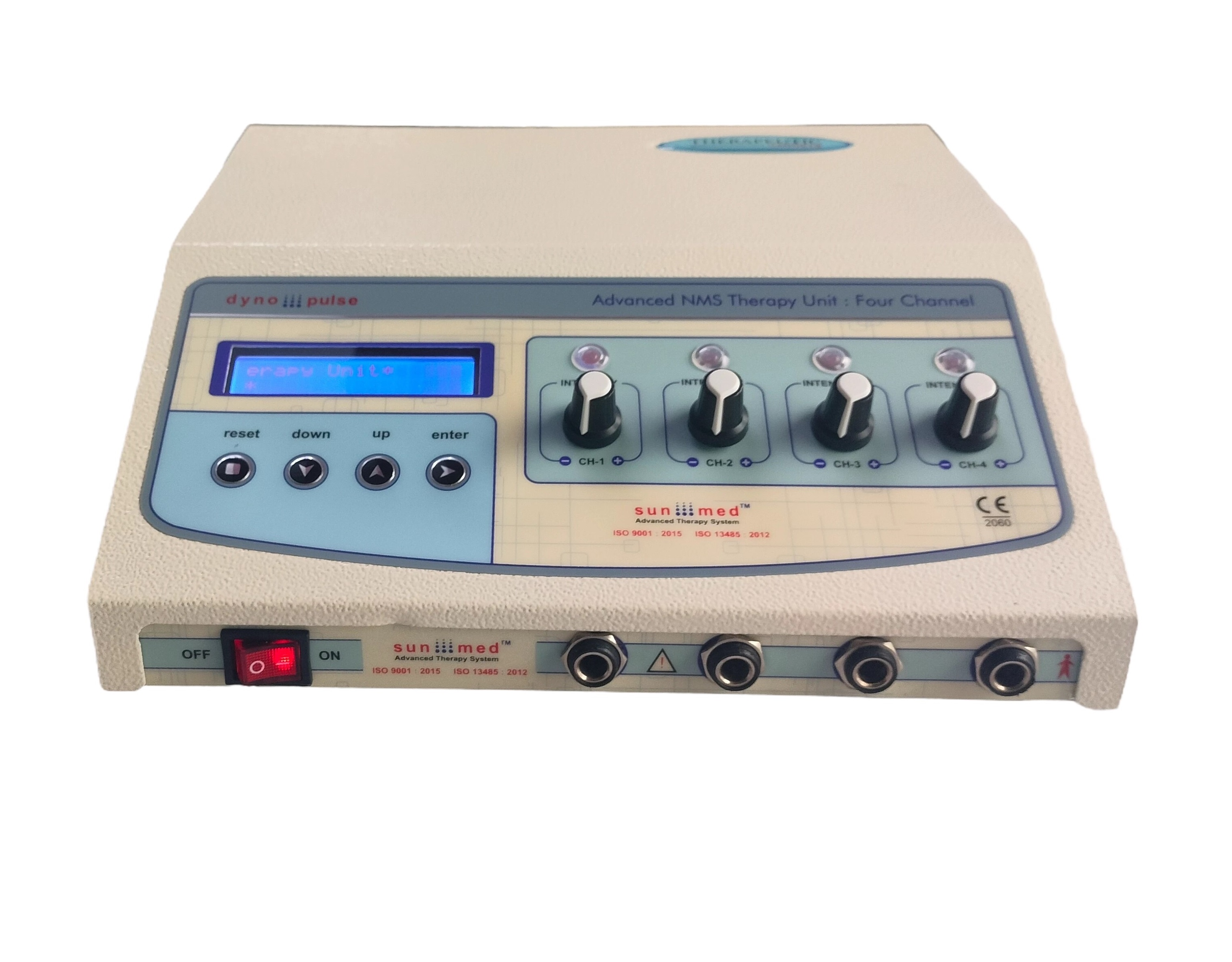 Four independent output channels with indicator 0-80 mA pulse Amplitude on each channel SMPS Supply - Works between 90 to 270 volts. Frequency selection from 0-250 Hz & Pulse Width selection from 100-250 µsec. 5 Pulse modes: Continuous, Sweep, Pulsed, Burst, PWM 128X64 Graphic LCD for ease of use Two independent output channels with indicator 0-80 mA pulse Amplitude on each channel 12 different modes/programs of TENS current to tackle many conditions 60 Minutes timer which can be varied within the interface LCD display for easy-to-understand operation Audio buzzer at end of treatment & for safety output control Light weight for Portability Especially made for personal use